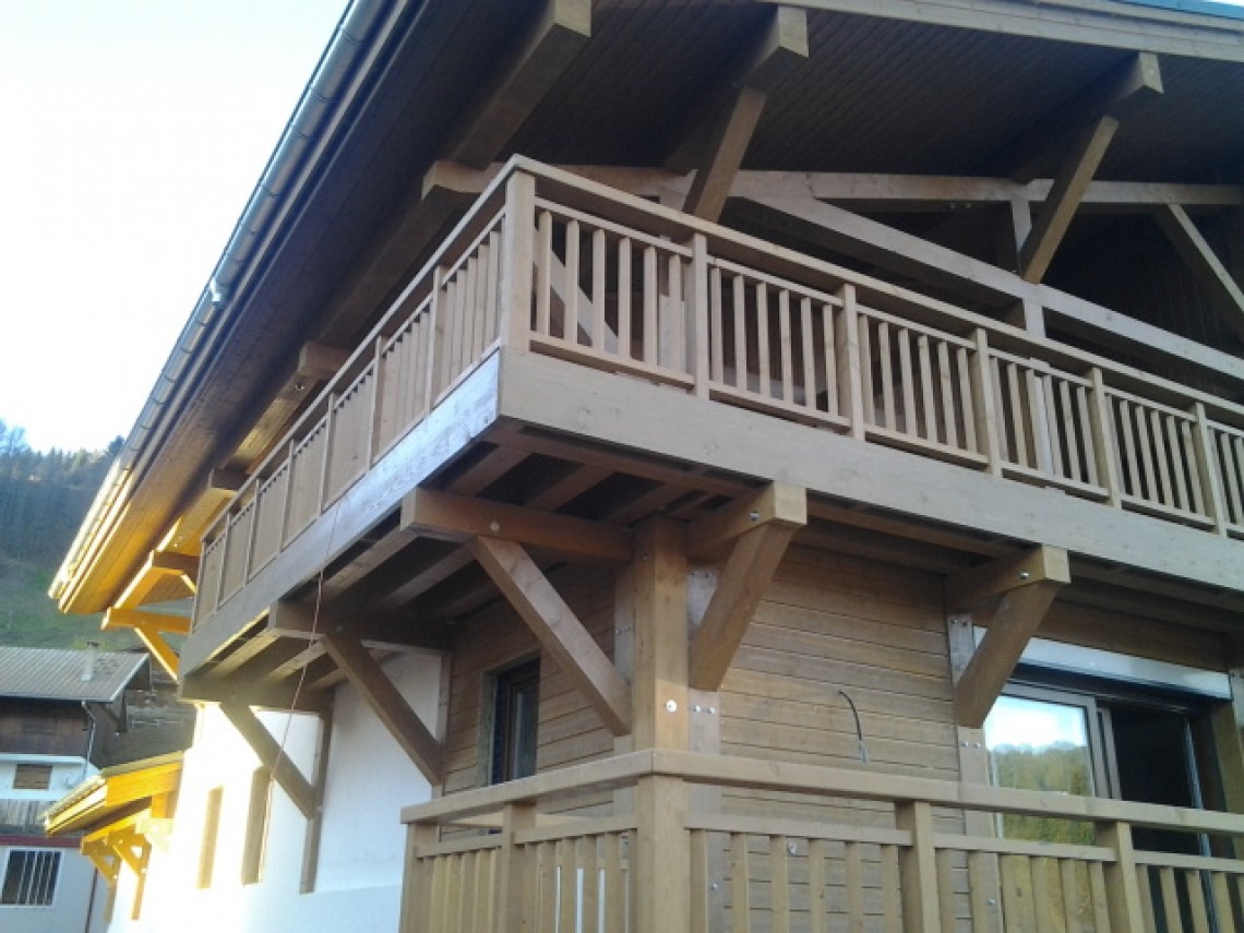 Building in an alpine design style. Machine precision cut elements used for decorative effect. Prefabricated panels for this house were already partially set during delivery stage.