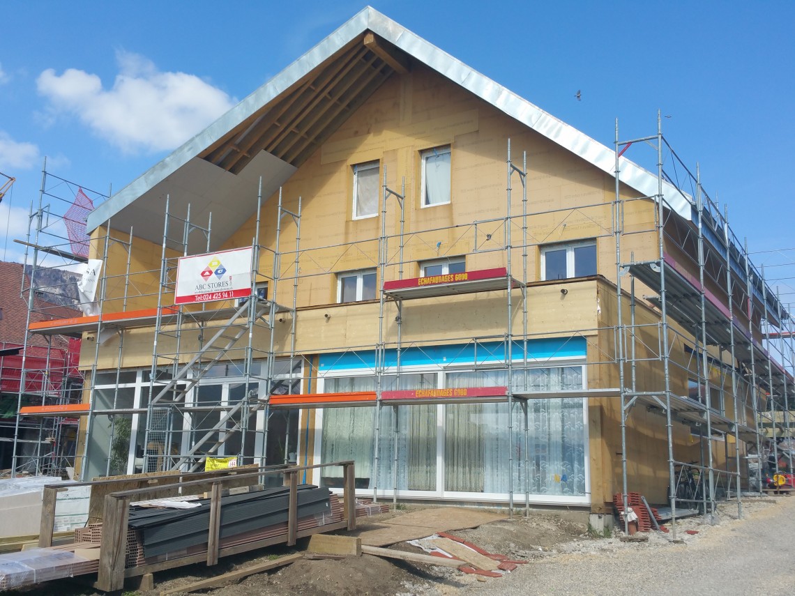 Trīsstāvīga divu dzīvokļu māja. Celta 2017. gada vasarā Onnens pilsētā, Šveicē.
